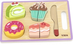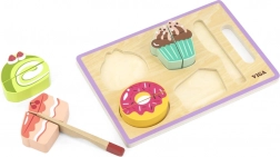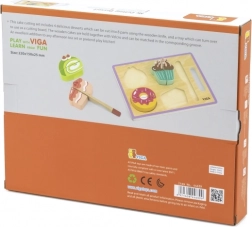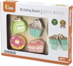 Scoprite il gioco creativo con il set in legno VIGA My Cutting Dessert. Quattro dessert colorati possono essere “tagliati” in sicurezza con il coltello in legno grazie al velcro in 8 pezzi e poi ricomposti. Il vassoio si può facilmente capovolgere e usare come tagliere, favorendo un gioco autentico nella cucina dei bambini.