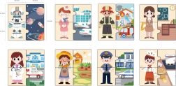 I bambini conoscono 8 diverse professioni e i loro ambienti. Il tema del lavoro stimola la curiosità, il lessico e la comprensione del mondo che ci circonda.
