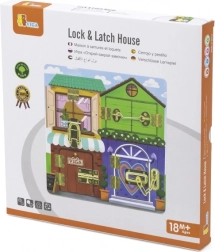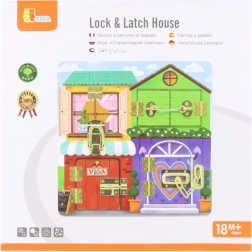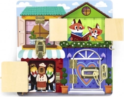 Grazie ai diversi meccanismi, i bambini esercitano la motricità fine, le abilità di presa e la coordinazione occhio‑mano. Le illustrazioni colorate e il legno piacevole rendono il gioco un accessorio attraente e resistente per la cameretta.
