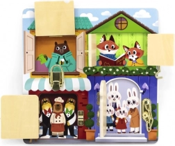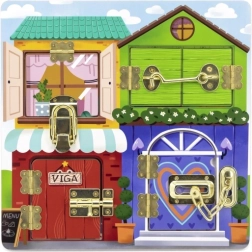 Questa tavola in legno di qualità, ispirata al metodo Montessori, offre quattro porticine con vere serrature e catenacci, che il bambino apre e chiude gradualmente. Ogni apertura rivela allegri animaletti, stimolando curiosità e concentrazione.