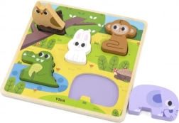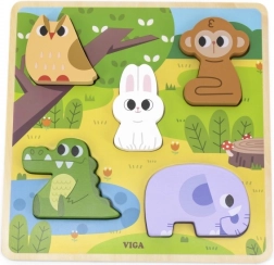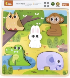 Scoprite i divertenti puzzle in legno VIGA a tema bosco, che sviluppano le abilità dei bambini già dai 18 mesi. La tavola colorata e i 5 pezzi a forma di animale supportano la motricità fine, la coordinazione occhio–mano e il pensiero logico. Durante la composizione, i bambini si divertono e allo stesso tempo esercitano il riconoscimento delle forme e la memoria.
