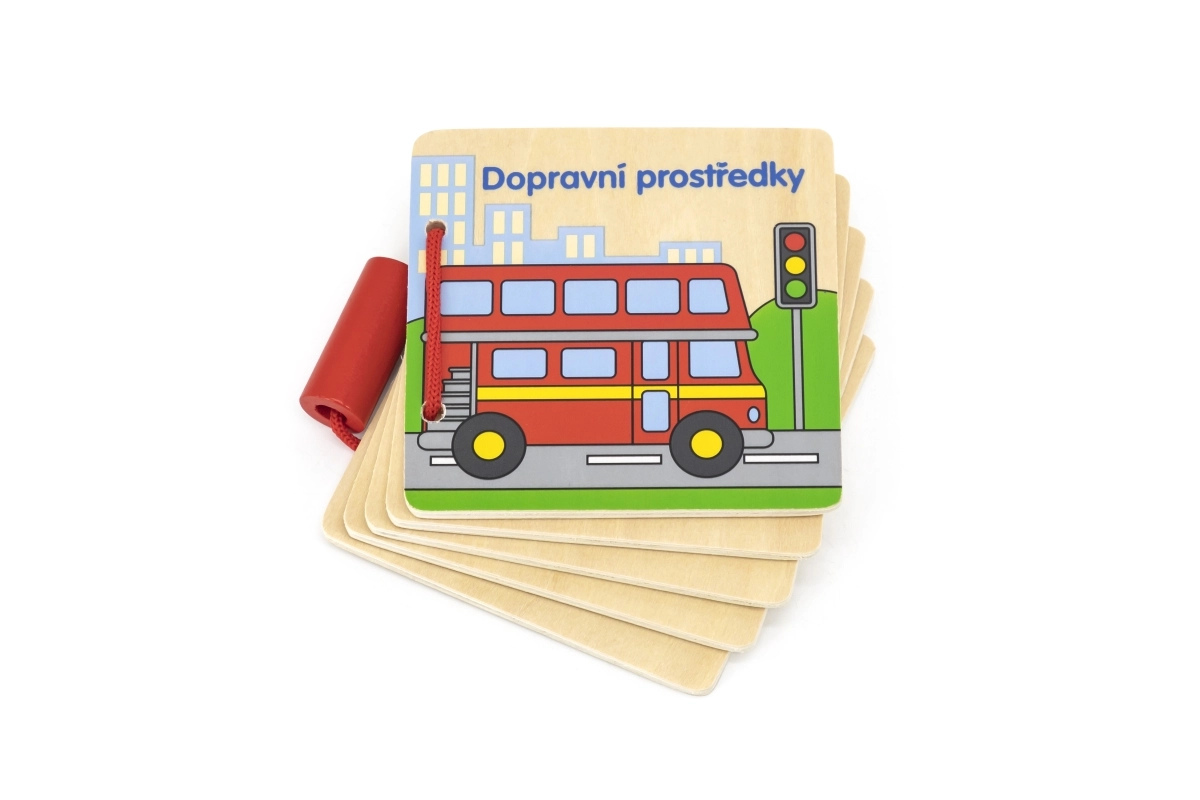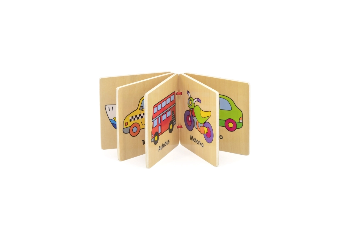 Questo libricino in legno di qualità è uno strumento ideale per le prime esplorazioni del mondo circostante. Le illustrazioni colorate di auto, treni, barche e altri mezzi di trasporto sono accompagnate da didascalie in ceco, così i bambini sviluppano in modo naturale le abilità linguistiche e cognitive.