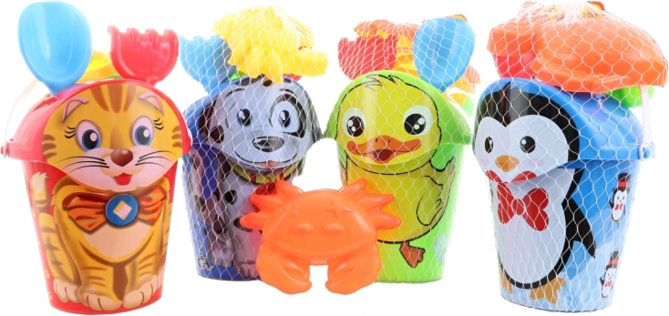 Set per la sabbia per bambini con secchiello, annaffiatoio e formine