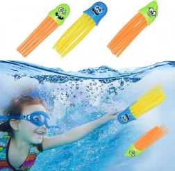 Divertente set di 6 polipetti colorati per bambini, che una volta gettati in acqua affondano rapidamente e favoriscono il training di immersione e le abilità di nuoto. Ideali per piscina o stabilimento balneare sotto la supervisione di un adulto.