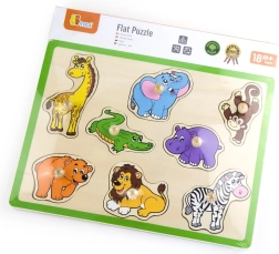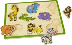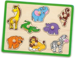 Puzzle a incastri in legno divertente ed educativo con tema animali selvatici aiuta i bambini dai 18 mesi a sviluppare la motricità fine, la coordinazione occhio–mano e il riconoscimento di forme e animali. Grazie ai pomelli in legno, i pezzi si afferrano facilmente anche con le manine più piccole. La solida tavoletta di 30 × 22,5 cm e i colori vivaci garantiscono un gioco lungo e sicuro.