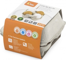 Il set è riposto in un robusto vassoio di cartone che sembra una vera confezione di uova, rendendo il gioco di cucina ancora più realistico. Grazie alle dimensioni compatte, si ripone e si trasporta facilmente.