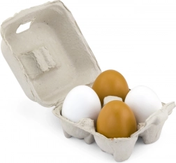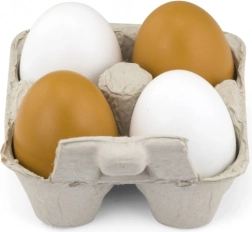 Quattro uova di legno in due colori offrono ai bambini un’esperienza autentica di cucina e di gioco al negozio.