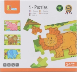 Scopri divertenti puzzle in legno a tema giungla con 4 immagini separate di animaletti, per un totale di 48 pezzi. I bambini allenano motricità, logica e pazienza e possono comporre anche un’unica immagine lunga con tutti e quattro gli animali. Scelta ideale per i piccoli esploratori dai 24 mesi in su.