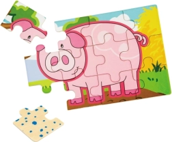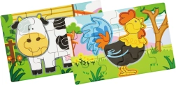 Puzzle in legno con motivi della fattoria. La confezione contiene in totale 4 immagini (48 pezzi complessivi). Dai puzzle si può comporre un’unica lunga immagine con tutti e 4 gli animali. Dimensioni della confezione: ca. 20,5 x 19,5 x 4,5 cm. Età 24 mesi e più.