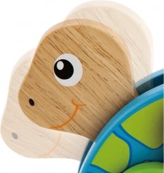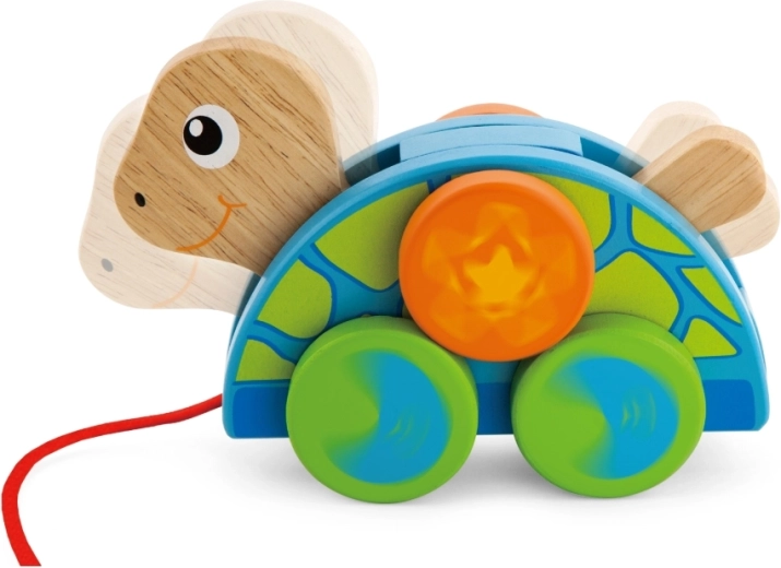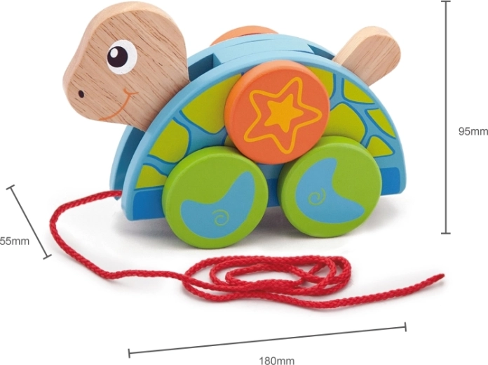 Questa colorata tartaruga di legno da traino è progettata per motivare i bambini a camminare, favorire la coordinazione dei movimenti e sviluppare in modo naturale sia la motricità fine che quella grossolana. La struttura in legno robusta e i bordi piacevolmente arrotondati assicurano un gioco sicuro, mentre i colori vivaci e il design giocoso stimolano la percezione visiva.