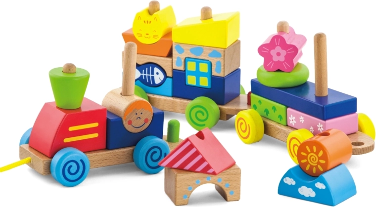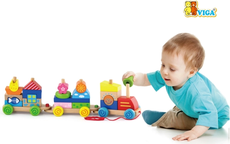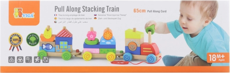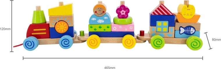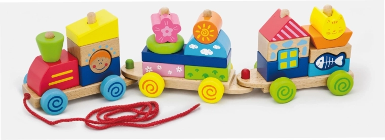 La cordicella resistente e le ruote scorrevoli permettono ai bambini di trainare facilmente il trenino, sviluppando movimento naturale ed equilibrio.