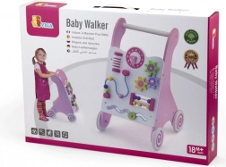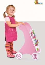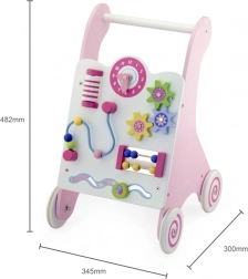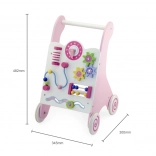 Il girello è dotato di ruote in gomma che impediscono lo scivolamento e garantiscono sicurezza durante la camminata. L’intero giocattolo è realizzato in legno laccato, che offre un tocco caldo e naturale, ed è anche molto resistente all’usura. Confezionato in una scatola colorata con maniglie, è ideale come regalo.