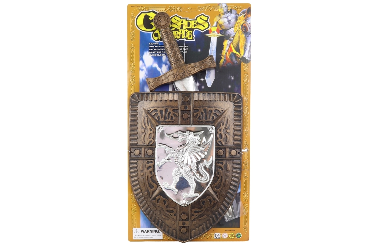 Contenuto della confezione: 1× spada in plastica, 1× scudo da cavaliere in plastica, fornito su cartoncino.