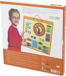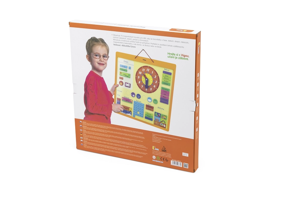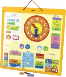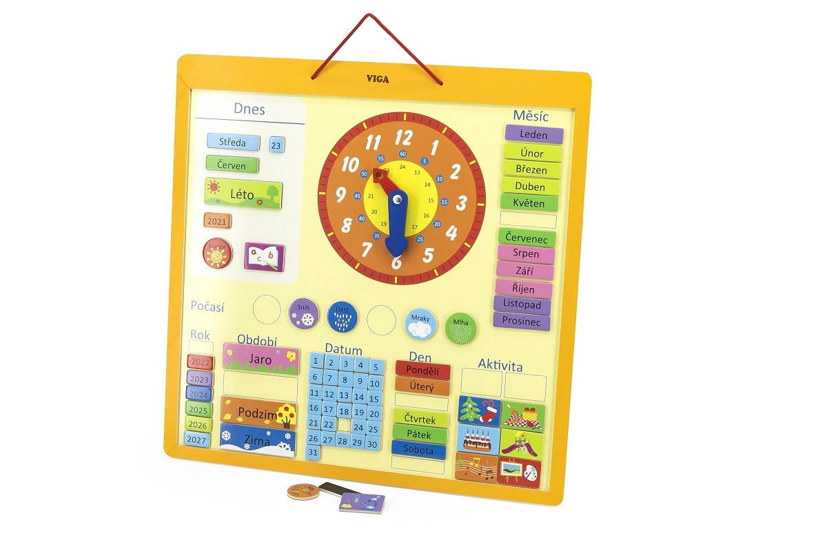 Scopri un modo divertente ed educativo per insegnare ai bambini a conoscere l’orologio, i giorni della settimana, i mesi, le stagioni, il meteo e le attività quotidiane. Il grande calendario in legno in versione ceca con tessere magnetiche consente un esercizio facile e ripetibile, favorisce il pensiero logico e la motricità fine.