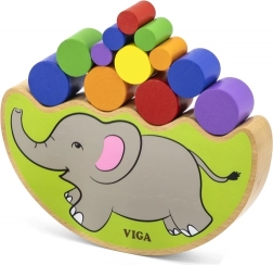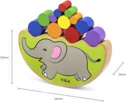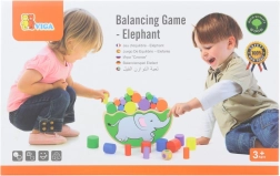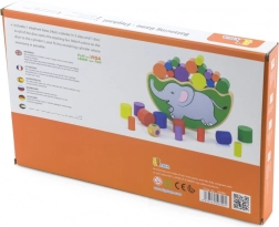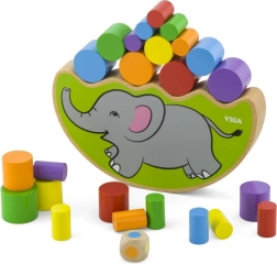 - Base di equilibrio a forma di elefante, cilindri in legno colorati, dado colorato