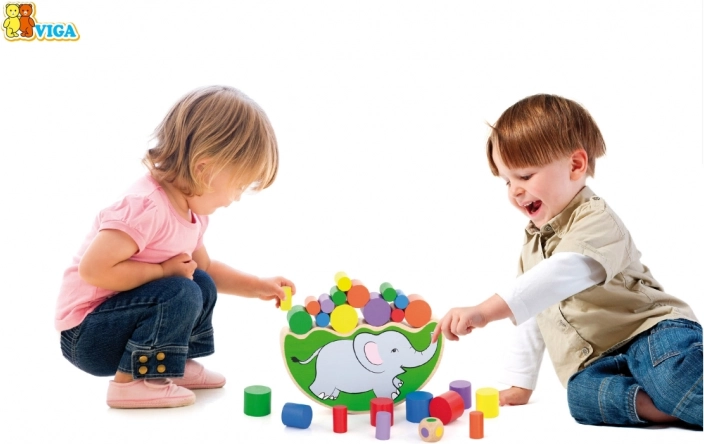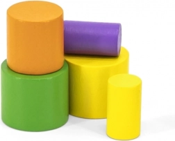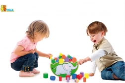 La base arcuata a forma di elefante e le diverse dimensioni dei cilindri insegnano ai bambini a bilanciare con delicatezza e a posare i pezzi con precisione.