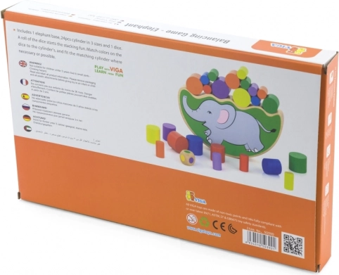 Divertente gioco in legno per bambini dai 3 anni che sviluppa la motricità fine, la pazienza e la coordinazione occhio–mano. I giocatori lanciano un dado colorato e, in base al colore uscito, tolgono o posano un cilindro sulla base a forma di elefante – senza farla ribaltare!