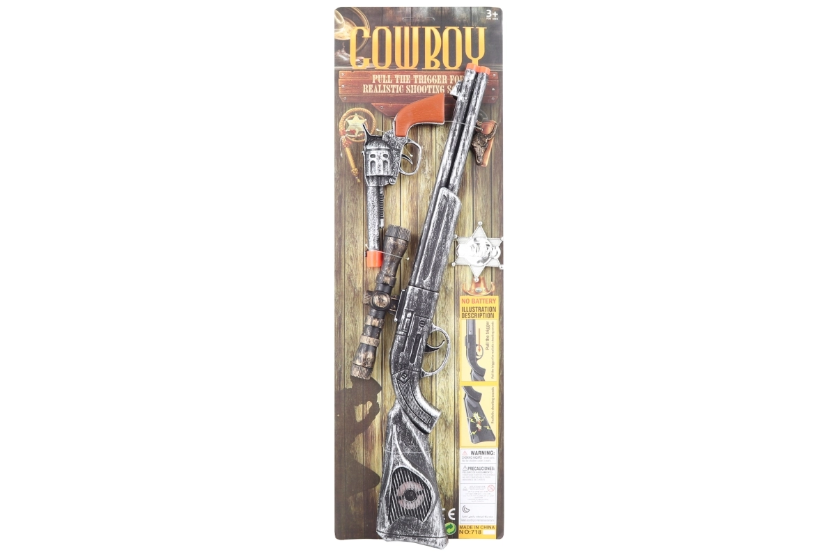- Equipaggiamento completo da cowboy: fucile, pistola, stella da sceriffo e ciondolo