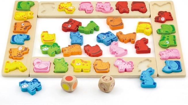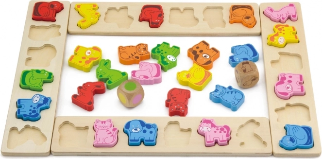 - Contenuto della confezione: 4 tavole modello, 36 forme di animali, 1 dado con animali, 1 dado dei colori