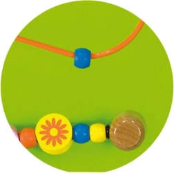 Le perline colorate su un filo curvo favoriscono la motricità fine, la concentrazione e la fluidità dei movimenti delle piccole dita.