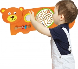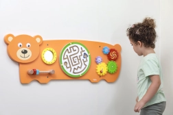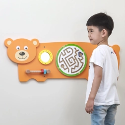 La tavola sensoriale Orsetto è progettata secondo i principi Montessori per motivare naturalmente i bambini alla scoperta e alla pratica delle abilità. Offre diverse attività: rotazione degli ingranaggi, guida della pallina nel labirinto, osservazione nello specchietto sicuro e allenamento della presa con le viti filettate. Grazie alla robusta struttura in legno e alla possibilità di montaggio a parete, è ideale per camerette, aree gioco e scuole dell’infanzia.