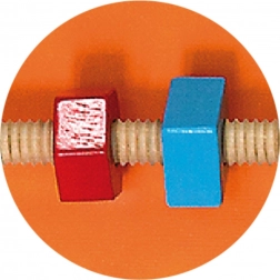 Il labirinto con pallina e le viti filettate allenano la precisione delle dita, la presa e la coordinazione occhio–mano. I bambini spostano la pallina esercitando pazienza e concentrazione.