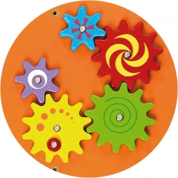Gli ingranaggi colorati possono essere disposti e fatti ruotare, favorendo il pensiero logico e la comprensione di causa ed effetto. Un divertimento con valore educativo.