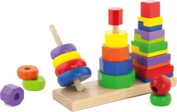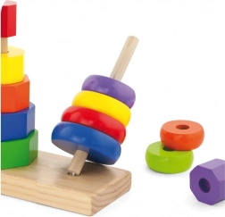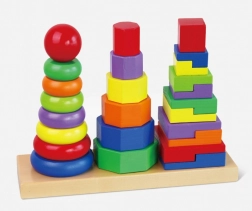 - Composizione interattiva: I pezzi colorati possono essere combinati e impilati su tre diversi perni.