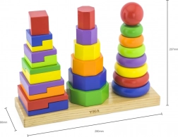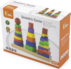 Il puzzle di legno a piramide è un giocattolo ideale per bambini dai 2 anni, che supporta lo sviluppo della motricità e il riconoscimento delle forme grazie ai pezzi geometrici colorati.