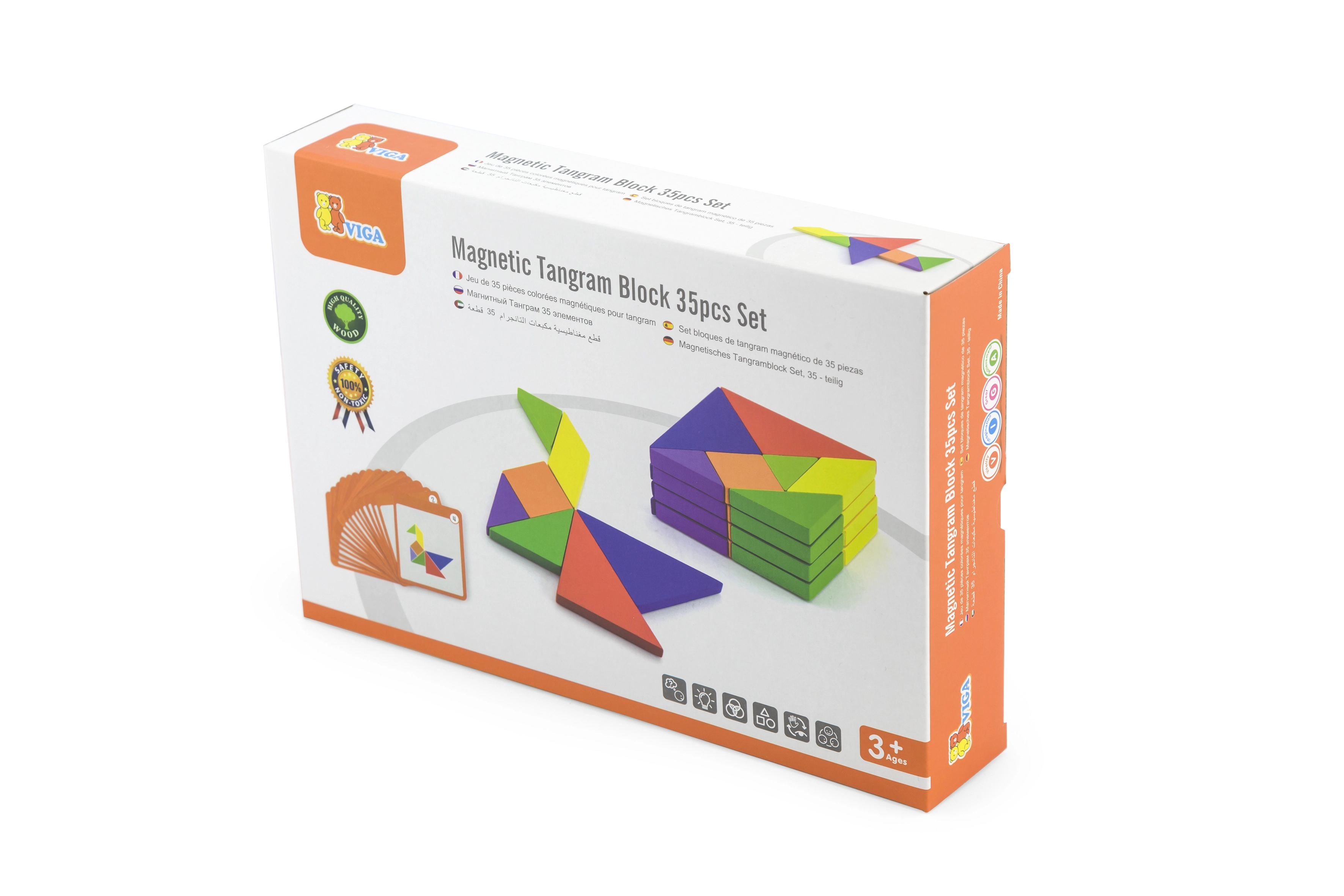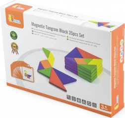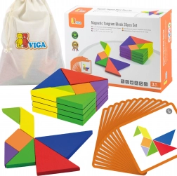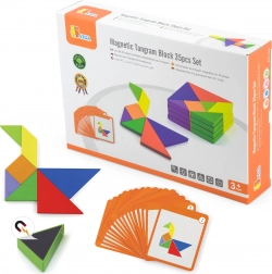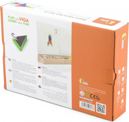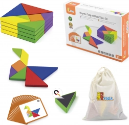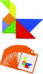Questo colorato tangram in legno è uno strumento ideale sia per il gioco in casa che per la didattica prescolare. I bambini compongono immagini seguendo le carte incluse o la propria fantasia, sviluppando immaginazione spaziale, creatività e capacità di problem solving. I pezzi in legno massello, accuratamente levigati, sono piacevoli da maneggiare e resistenti all’uso quotidiano.