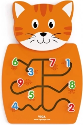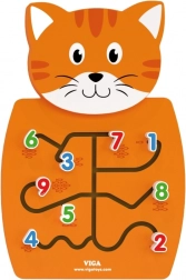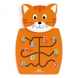 Gatto in legno con labirinti per muovere i numeri e sviluppare la motricità fine.