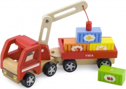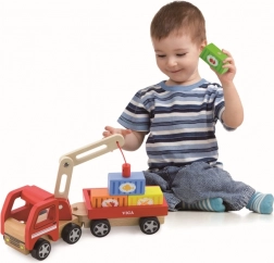 La gru VIGA in legno con contenitori è un giocattolo ideale per i bambini dai 18 mesi in su. Questa gru in legno ha un braccio mobile e contenitori in legno con magneti per sollevare e trasportare.