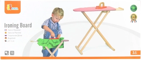 Elegante e resistente asse da stiro in legno con ferro da stiro di VIGA per bambini dai 3 anni. Offre struttura pieghevole, robusto rivestimento in tessuto e pratica mensolina per gli accessori. Perfetto per il gioco d'imitazione e lo sviluppo della motricità fine. Dimensioni dell'asse ca. 61 × 51 × 30 cm.