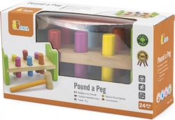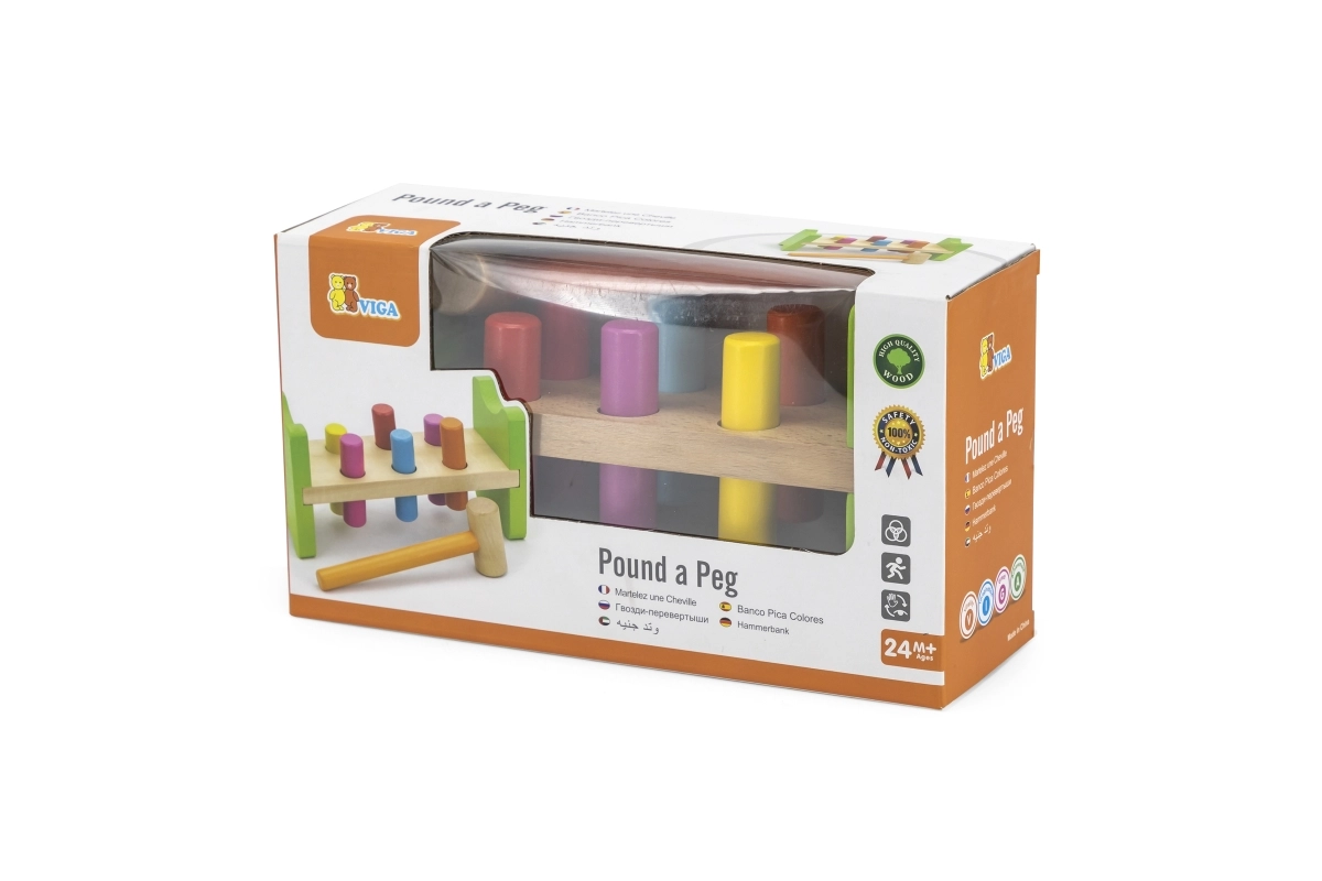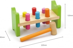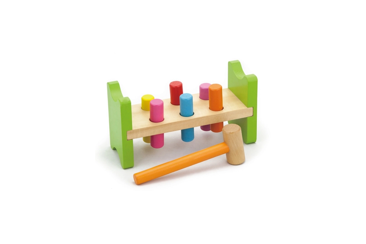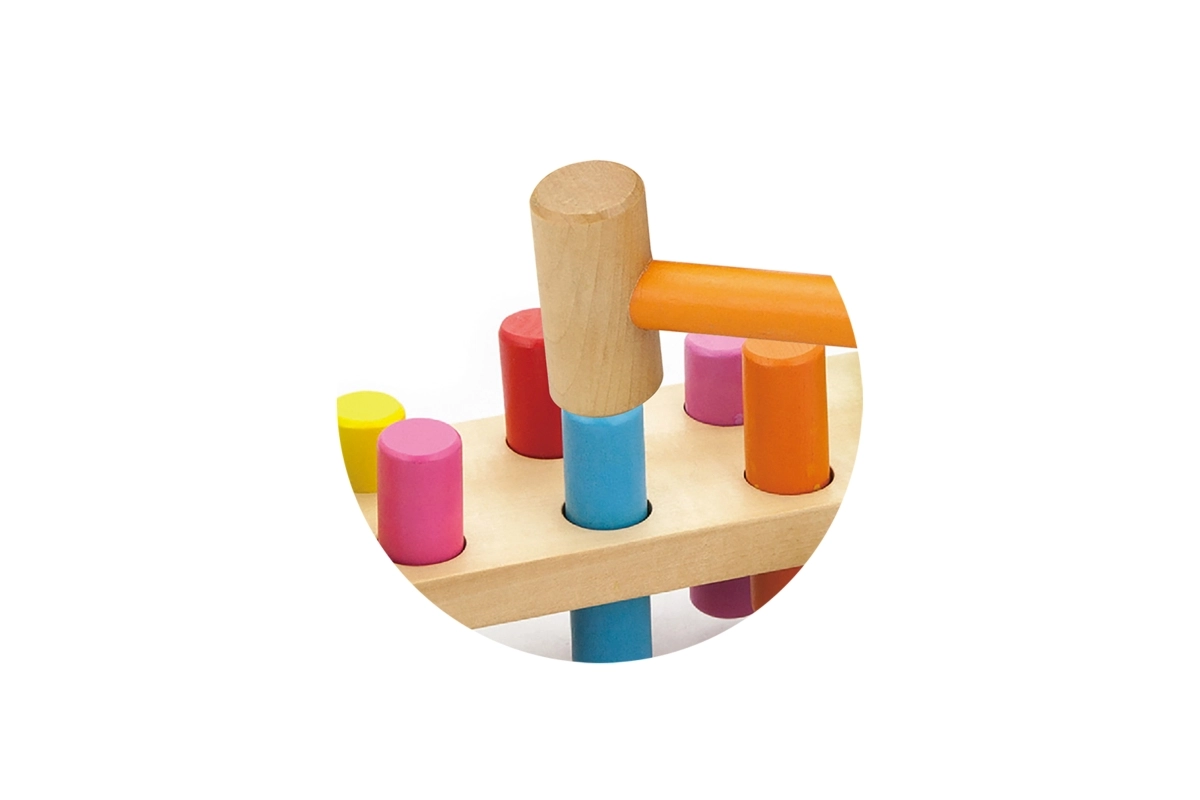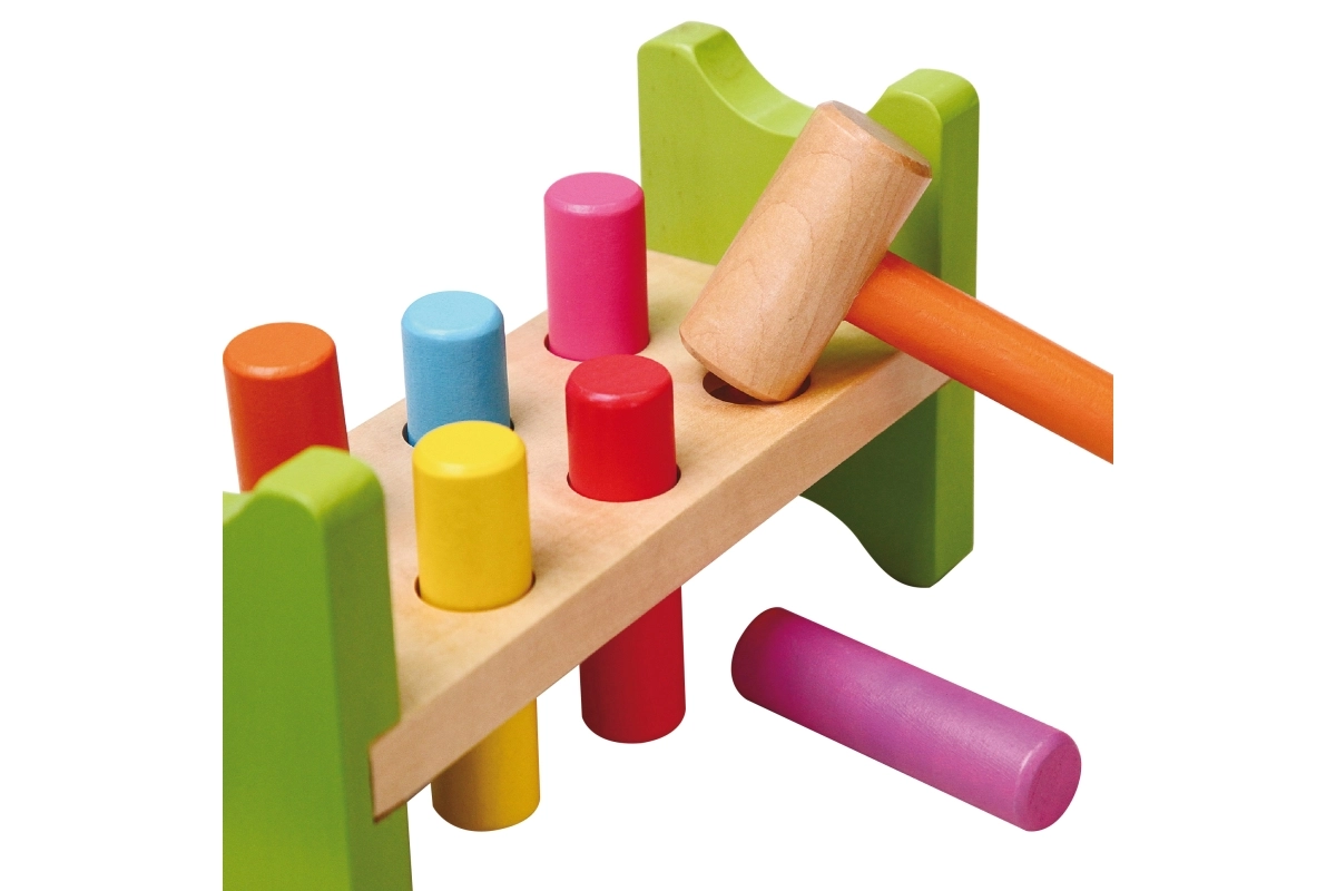 Include martello in legno e pioli multicolore per un divertimento che dura a lungo.