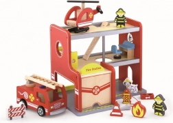 Caserma dei pompieri multilivello con piazzola di atterraggio per l'elicottero e spazio per il veicolo: coinvolge i bambini nel mondo dei soccorritori e ne stimola l'immaginazione.