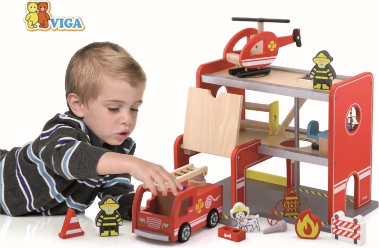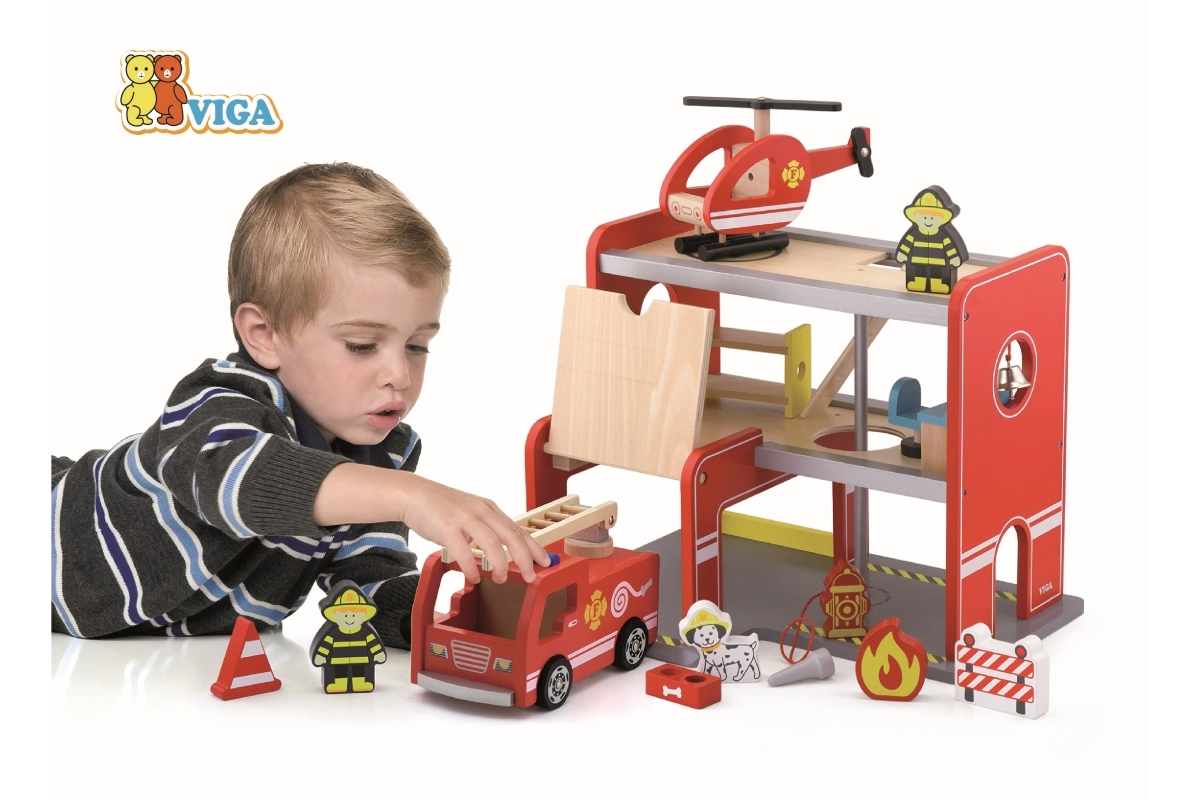 La stazione dei pompieri in legno Viga è un set di gioco completo a più piani che favorisce il gioco di ruolo, lo sviluppo della motricità fine e della fantasia. I bambini possono uscire dal garage con l’auto, atterrare con l’elicottero sulla piattaforma superiore e scivolare lungo il tubo direttamente verso l’intervento. I dettagli colorati e la solida struttura in legno garantiscono un aspetto accattivante e resistenza all’uso quotidiano.