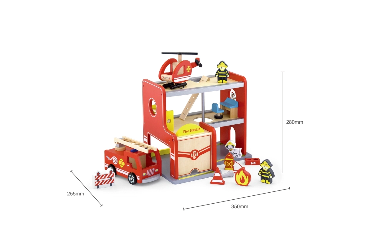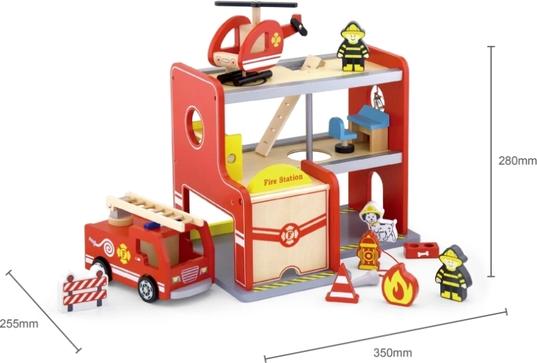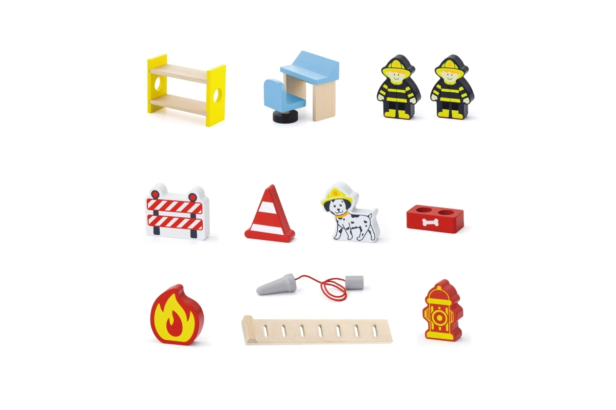 Nella confezione trovi tutto il necessario per giocare subito: edificio della stazione, 2 pompieri, elicottero, autopompa, idrante, letto a castello, sedia, pannello di controllo e scala. Materiali e colori sono sicuri e atossici, per un gioco senza pensieri. Ideale come regalo, piacevole e durevole.