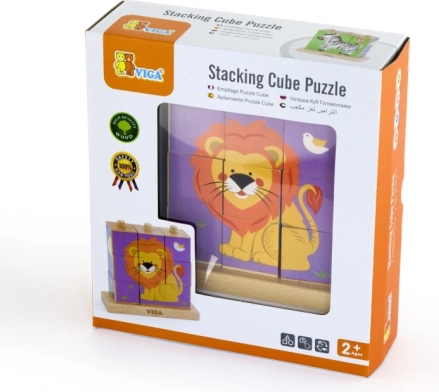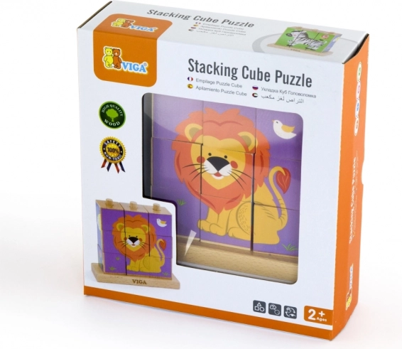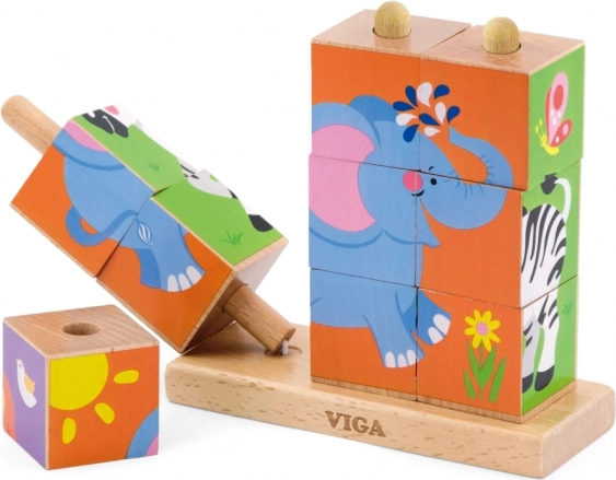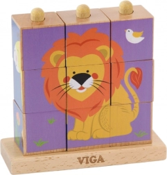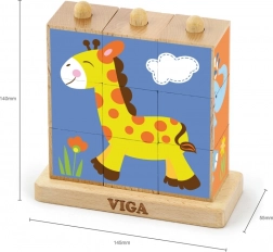 Scopri un divertente giocattolo in legno per i più piccoli: i cubi scorrevoli Viga con animali del safari. I bambini compongono, con 9 robusti cubi di legno, le immagini di elefante, leone, giraffa e zebra su una base stabile. Legno di faggio di alta qualità, perni inclinabili per una rotazione facile e sviluppo della motricità fine, della logica e della pazienza. Ideale da 24 mesi.