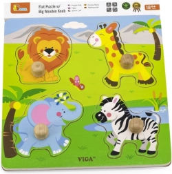 Questo puzzle in legno di alta qualità con quattro animali dello zoo offre un gioco sicuro e stimolante per i più piccoli. Grazie ai grandi pomelli in legno i bambini afferrano facilmente ogni pezzo e imparano a inserirlo correttamente al suo posto – li aiuta anche l’immagine sotto il pezzo, che porta al successo e alla gioia di completare.