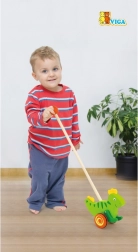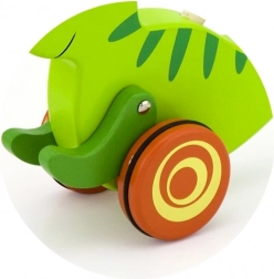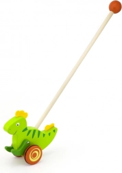 Il giocattolo in legno da spinta Dinosauro è un giocattolo classico progettato per i bambini che iniziano a muoversi. Questo robusto accessorio è dotato di ruote con accessori antiscivolo che proteggono il pavimento e facilitano il movimento. Il dinosauro verde muove energicamente le braccia spingendo, attirando e motivando il bambino a muoversi ulteriormente.