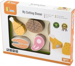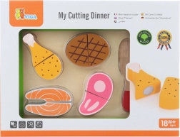 Ogni pezzo di carne è progettato per imitare realisticamente i veri alimenti. I bambini possono usare il coltello in legno per tagliare la carne e poi riunirla con il velcro. Il set è un ottimo aggiunto in qualsiasi cucina per bambini e stimola il gioco creativo.