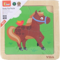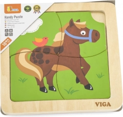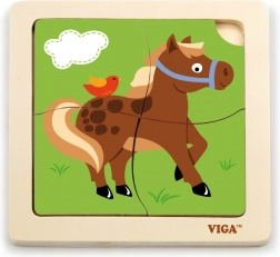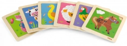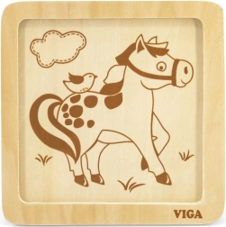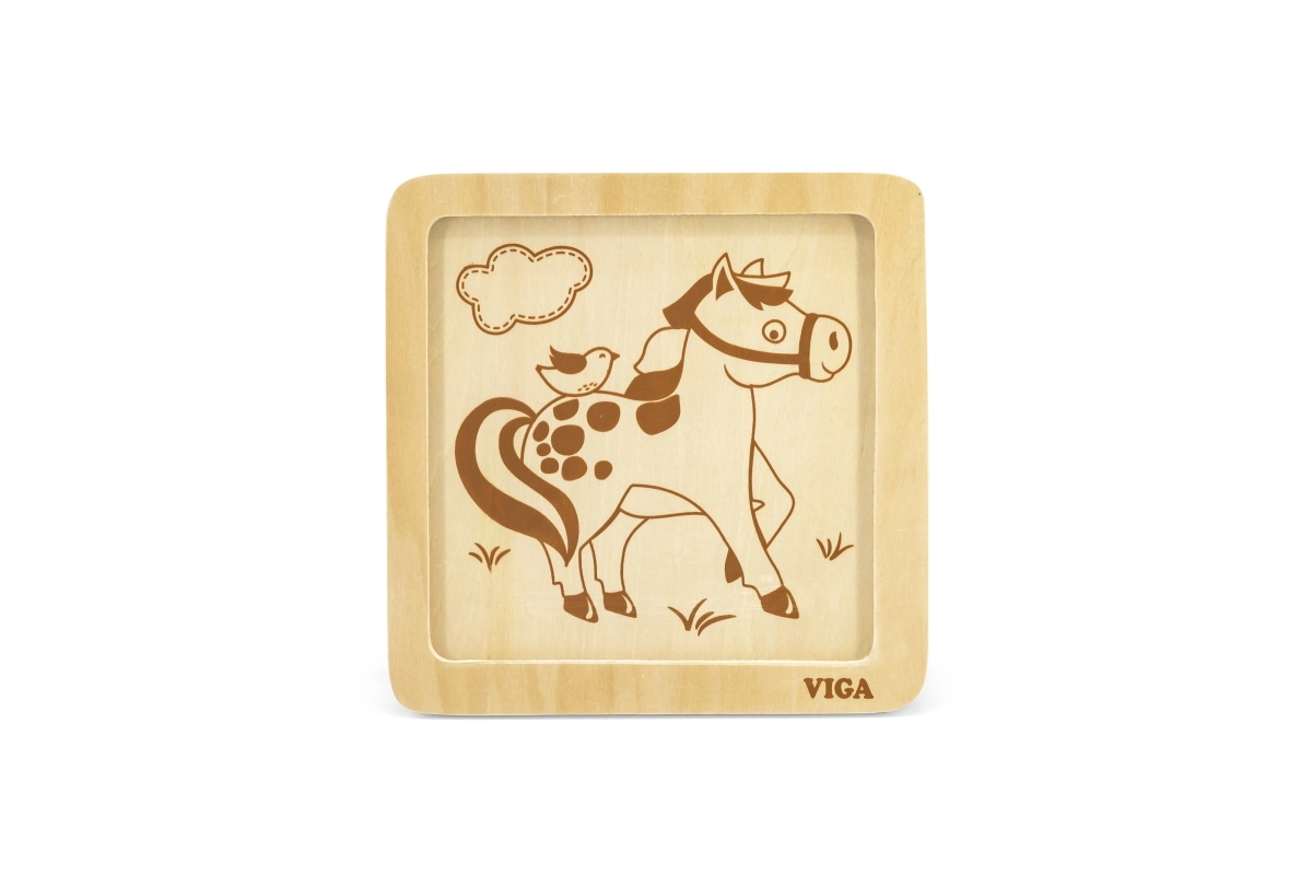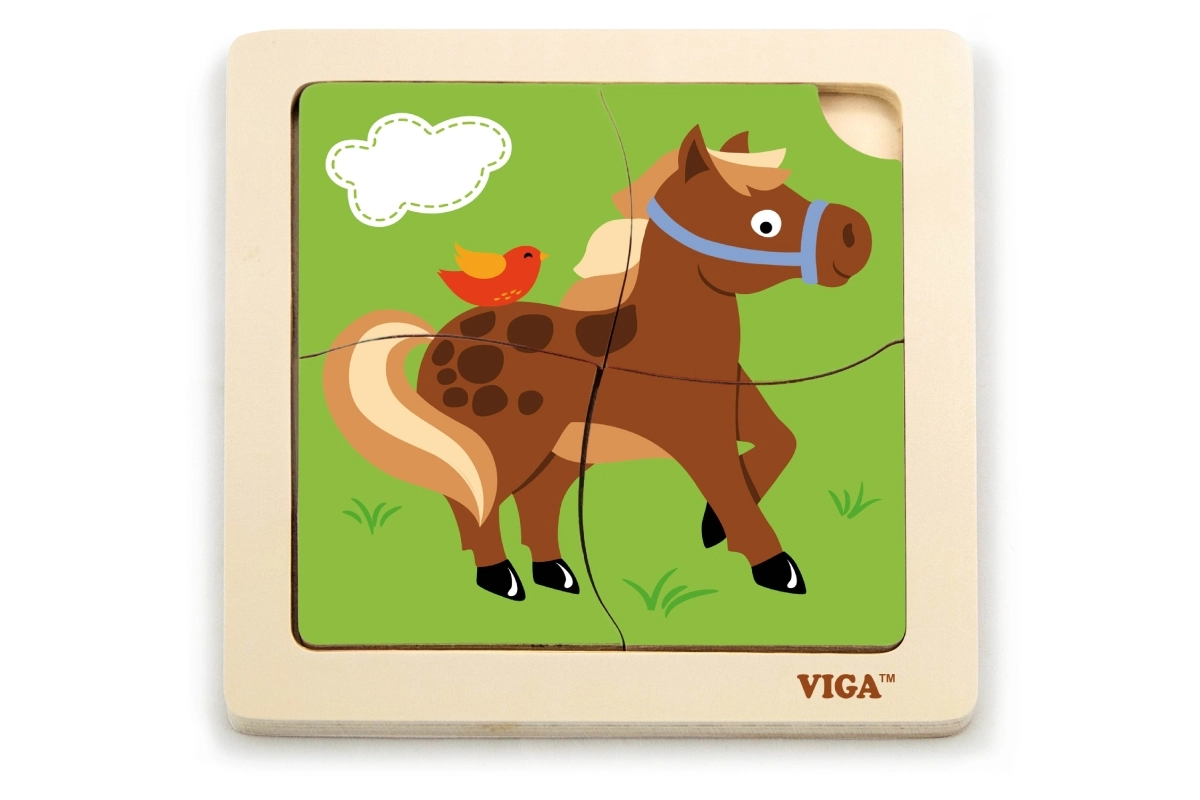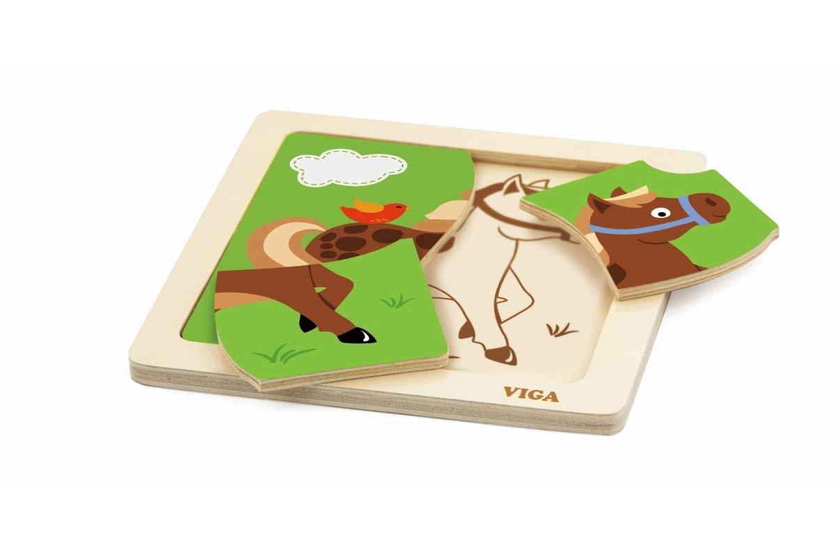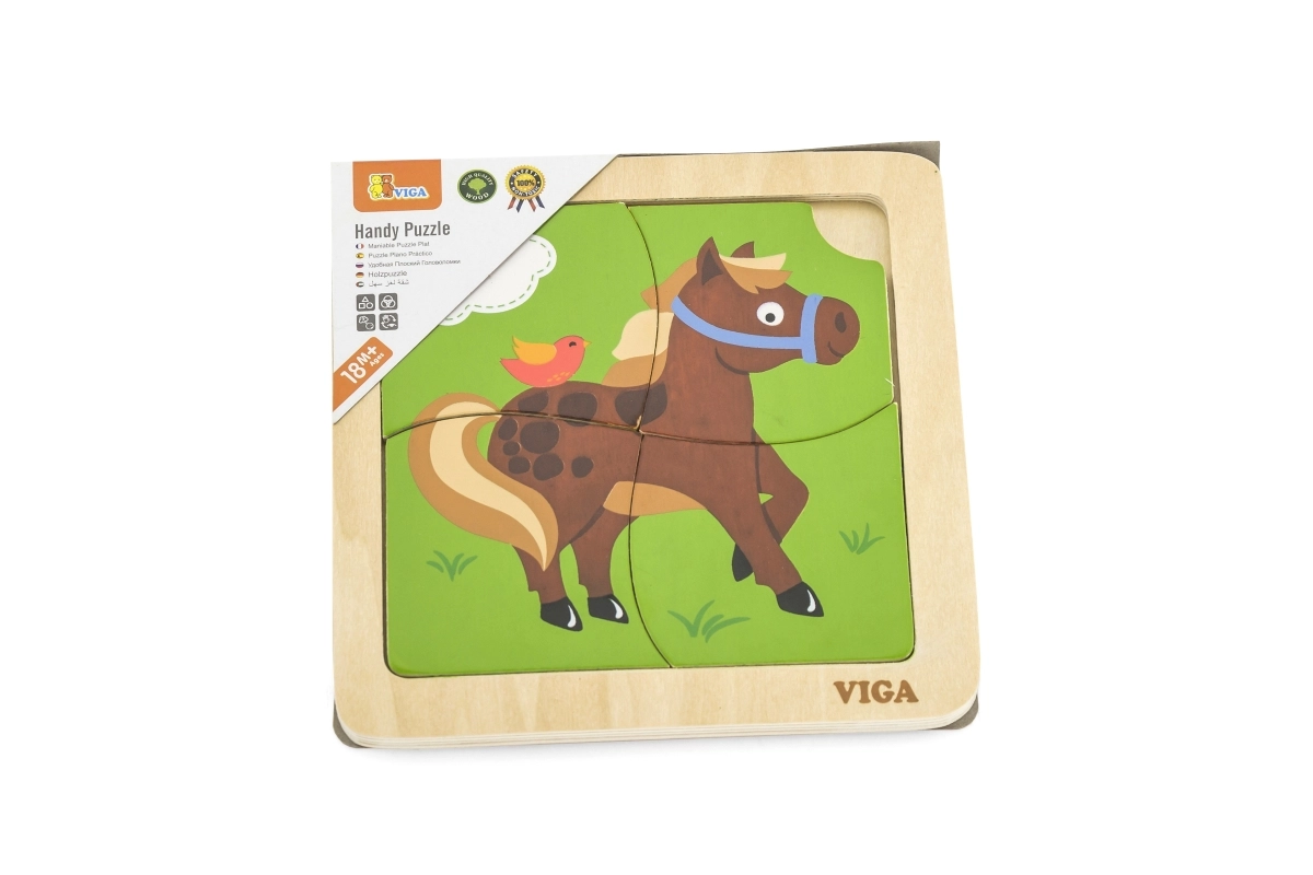 Questo puzzle compatto in legno con un simpatico cavallino è la prima composizione ideale per i più piccoli. I pezzi grandi e lisci si tengono comodamente nelle manine e si inseriscono nella solida cornice in legno, che facilita il corretto posizionamento.