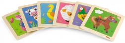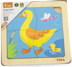 I puzzle in legno Viga contengono quattro pezzi tematici che si montano facilmente sulla tavola con l'immagine. Ogni pezzo è realizzato in legno di qualità e dipinto con colori sicuri e atossici, garantendo la sicurezza dei bambini e dell'ambiente.