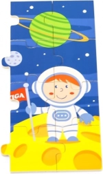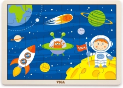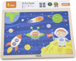 I puzzle in legno VIGA a tema spazio portano ai bambini fin dalla tenera età la gioia della scoperta. Le illustrazioni colorate con razzo, astronauta e pianeti favoriscono naturalmente il riconoscimento di forme e colori e lo sviluppo della coordinazione occhio–mano. Il puzzle composto misura circa 27,5 × 20 cm, perfetto per il tavolo o l’angolo giochi.