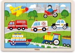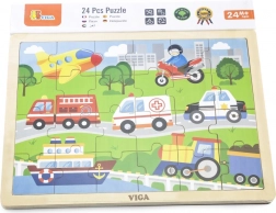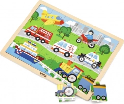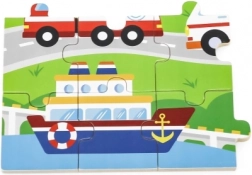 Questo puzzle in legno con immagini di mezzi di trasporto è un’ottima scelta come primo puzzle “più grande”. Grazie ai 24 pezzi, l’assemblaggio offre la giusta sfida: favorisce la concentrazione e la soddisfazione di completare un’immagine di circa 27,5 × 20 cm. Le illustrazioni colorate dei veicoli (ambulanza, autopompa dei pompieri, auto della polizia, nave, aereo, ecc.) motivano naturalmente i bambini a giocare più volte.