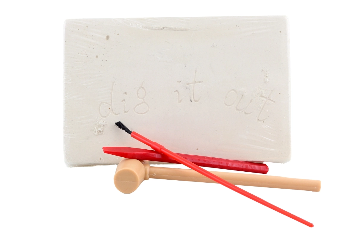 - Dotazione completa: blocco da scavare, martelletto, pennellino, strumento da scavo