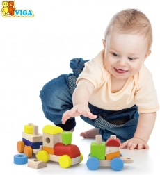 Colorato trenino impilabile in legno di VIGA che sviluppa la motricità fine, la classificazione di colori e forme e la creatività. Realizzazione in legno stabile, bordi arrotondati e dimensioni ideali per le mani dei più piccoli. Ottimo gioco educativo per bambini a partire da 18 mesi.