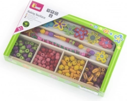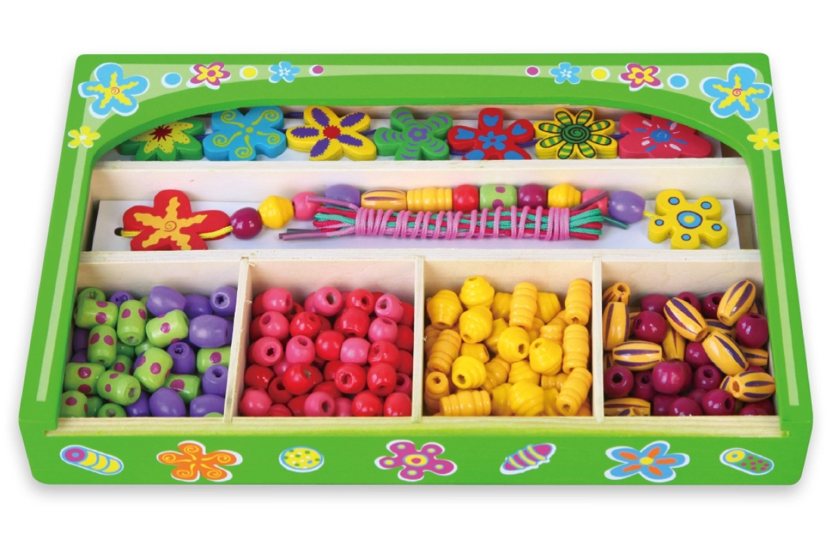 Questo set di perline in legno offre ore di divertimento ai bambini nella creazione di collane e braccialetti originali. Nella scatola trovi perline variopinte di diverse forme e dimensioni, incluse decorazioni floreali, e cordini per una facile infilatura. Grazie ai pratici scomparti, la scelta delle perline è semplice e l’attività favorisce naturalmente concentrazione ed espressione creativa.