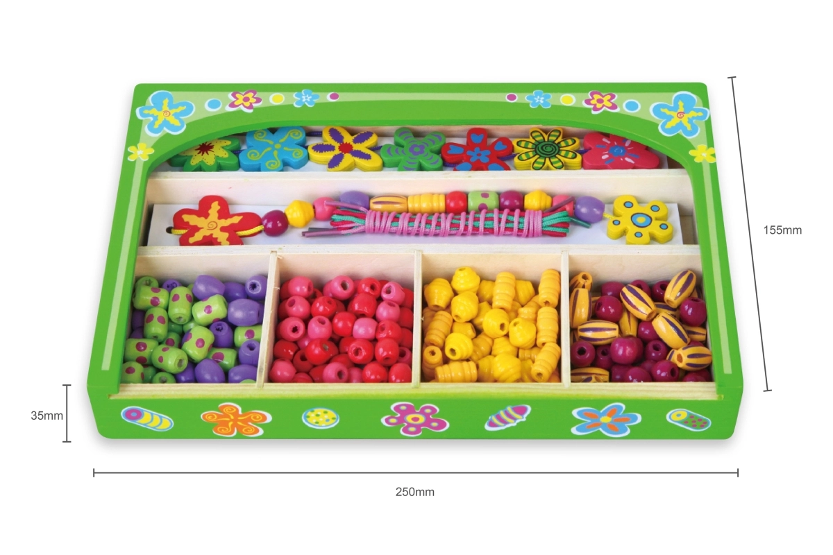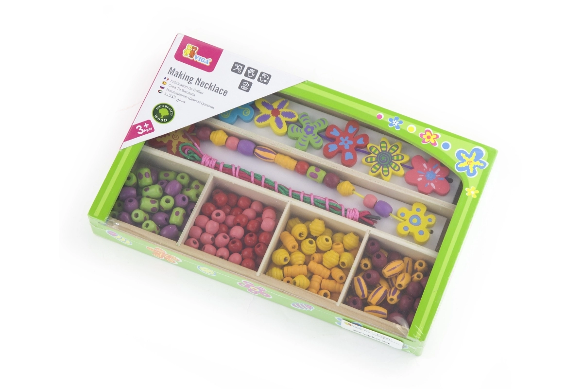 Le perline in legno, sicure e leggere, sono adatte alle manine e perfette per piccoli creatori dai 3 anni. Il set sviluppa motricità fine, pazienza e percezione dei colori, ed è un ottimo regalo per piccoli amanti del fai-da-te e dei giocattoli in materiali naturali.
