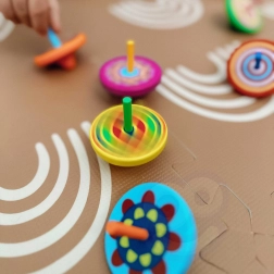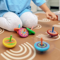 Ogni trottola offre un set unico di colori e motivi che creano accattivanti effetti visivi quando vengono girate.